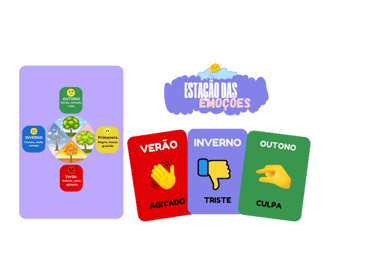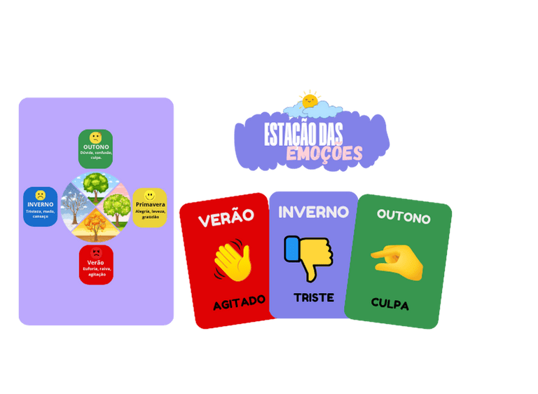 Uma brincadeira sensível e criativa que ensina a criança a observar como está se sentindo, comparando suas emoções com as estações do ano.