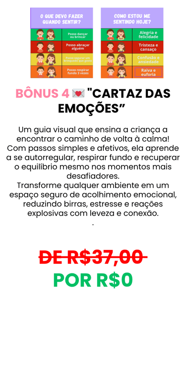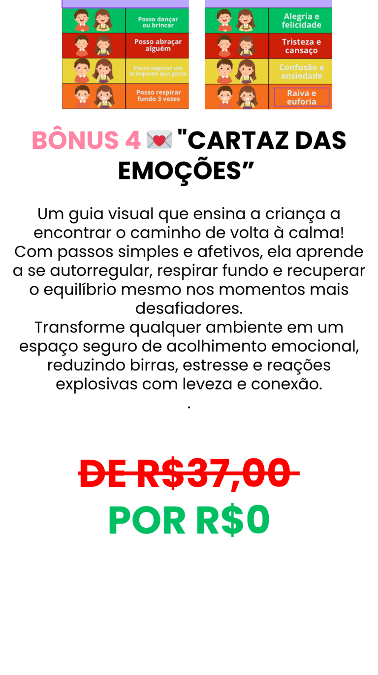 Um recurso visual e prático que ensina a criança a se acalmar com consciência e carinho, mesmo nos momentos mais difíceis.