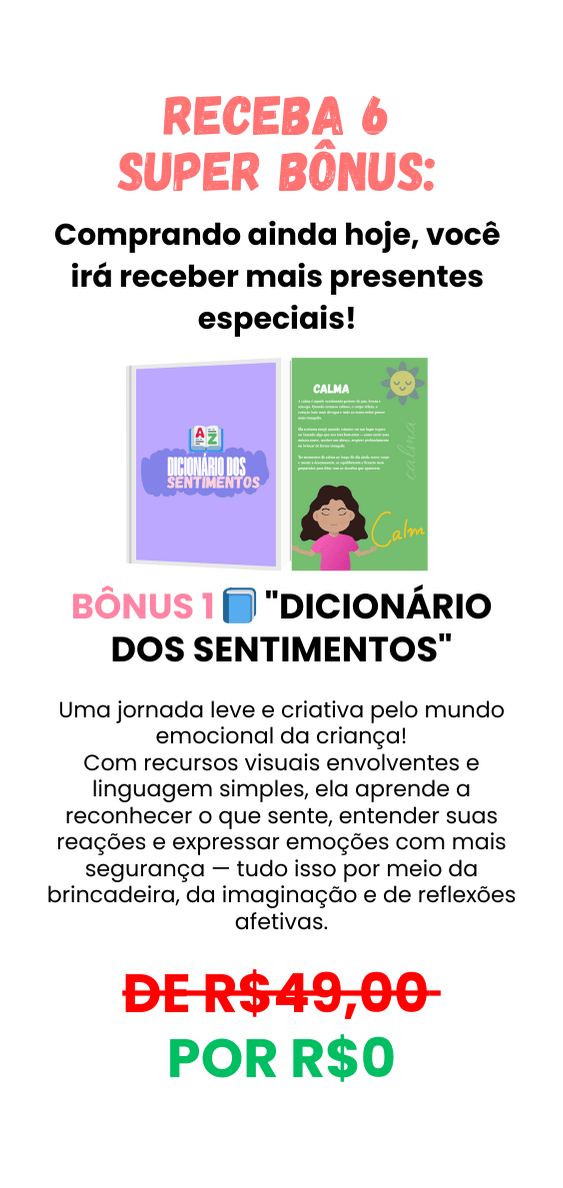 👉 Ensina sua criança a nomear, reconhecer e acolher o que sente com leveza